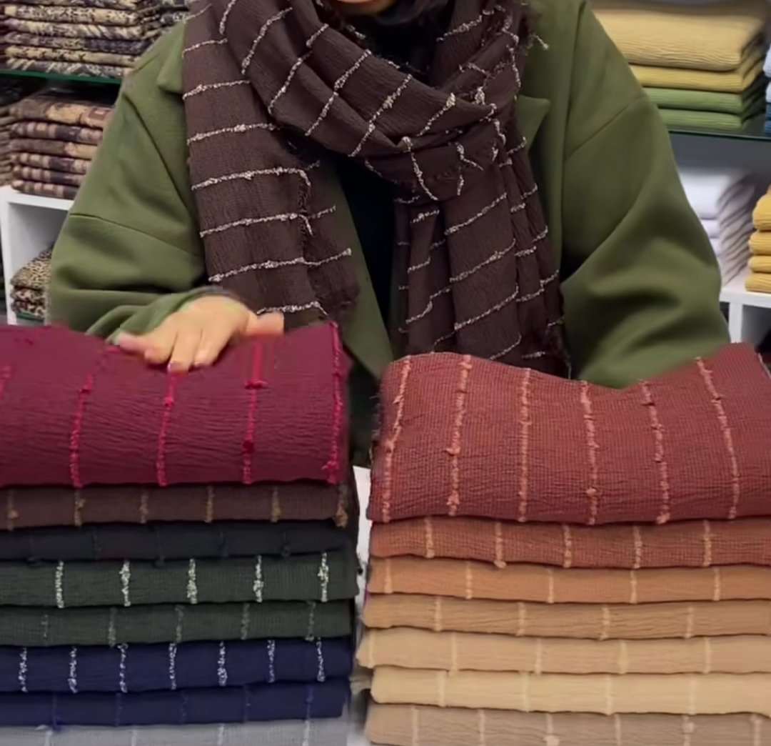 شال زنانه طرح مخمل میله ای نخی شاین دار